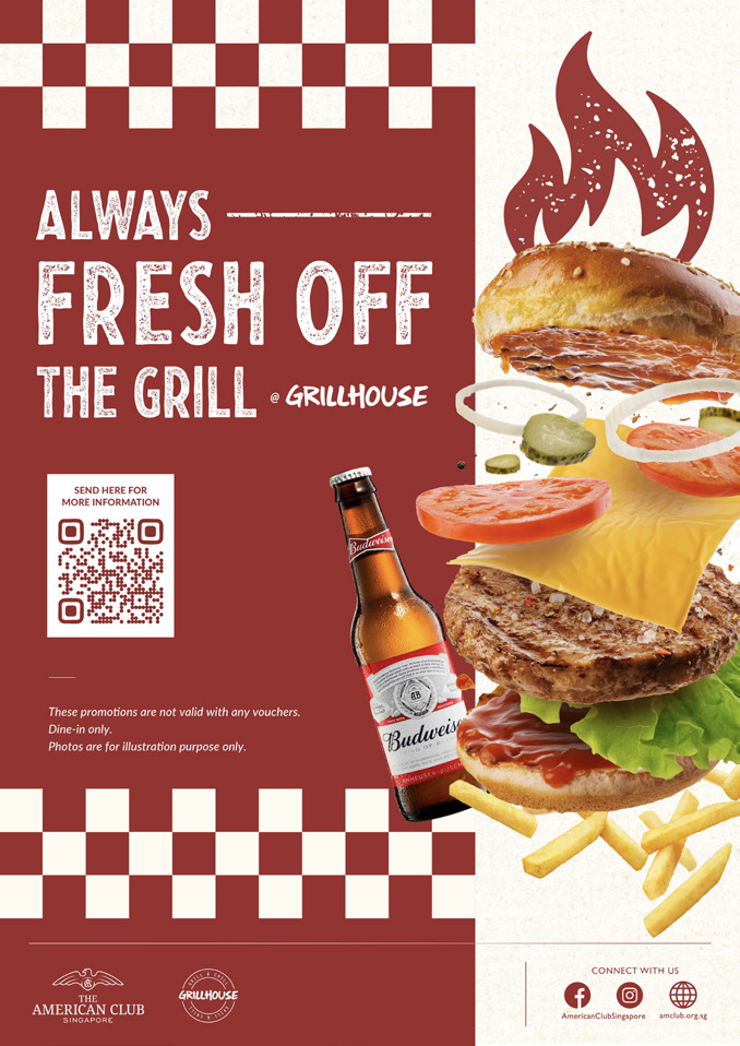 Enjoy the sizzling flavors of Grillhouse this season. Think juicy burgers, crispy sides, and chilled beers, all served fresh off the grill. A casual, satisfying dining spot for laid-back meals with friends and family.